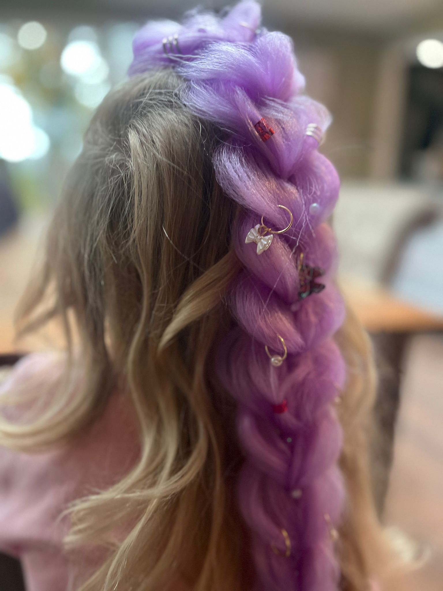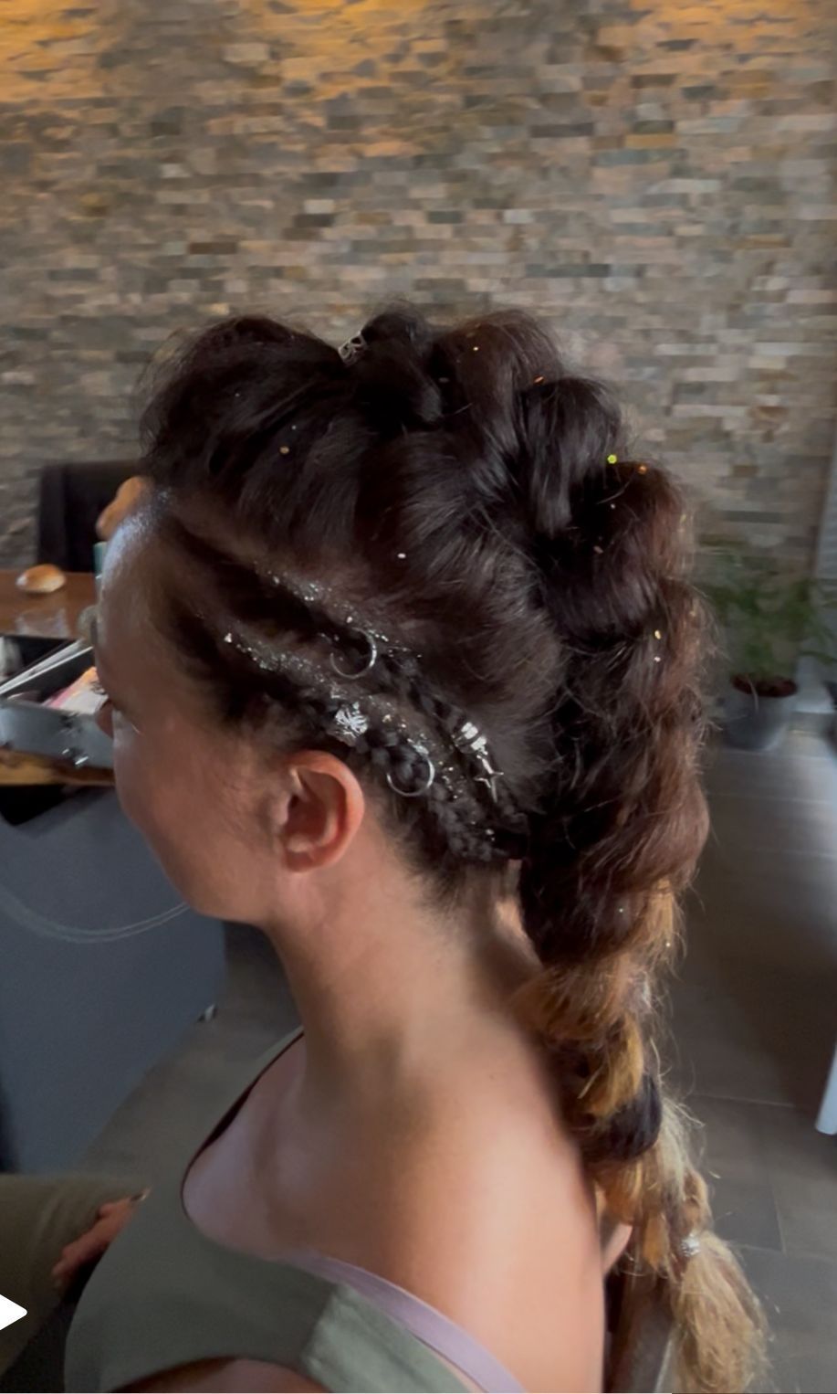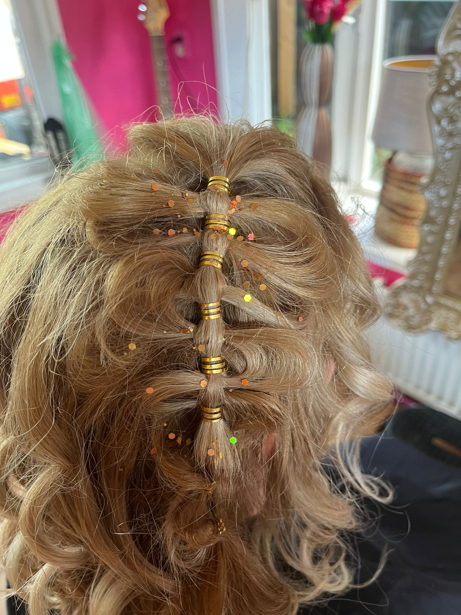 Schitterende vlecht met parels en glitters en een tinsel