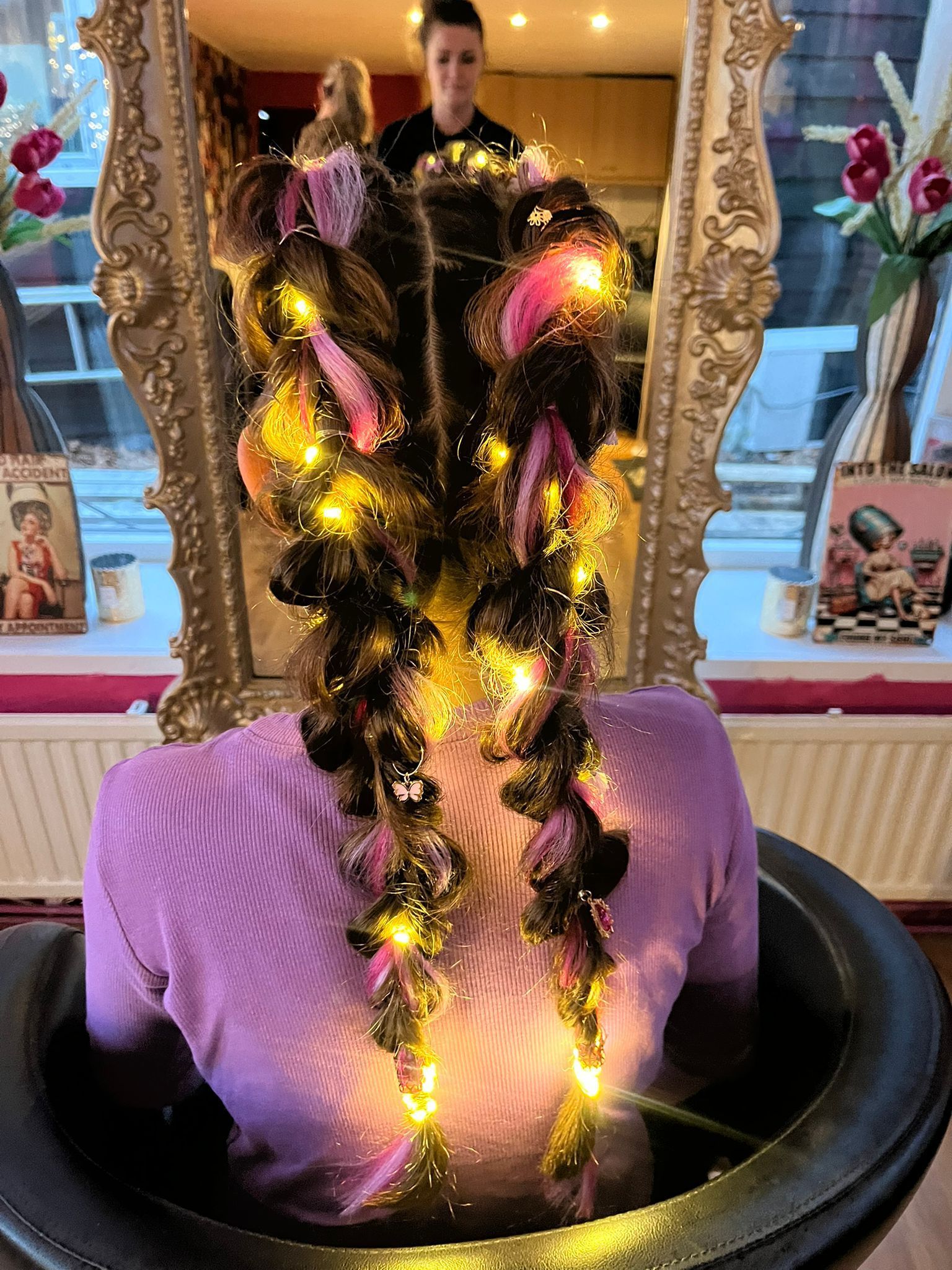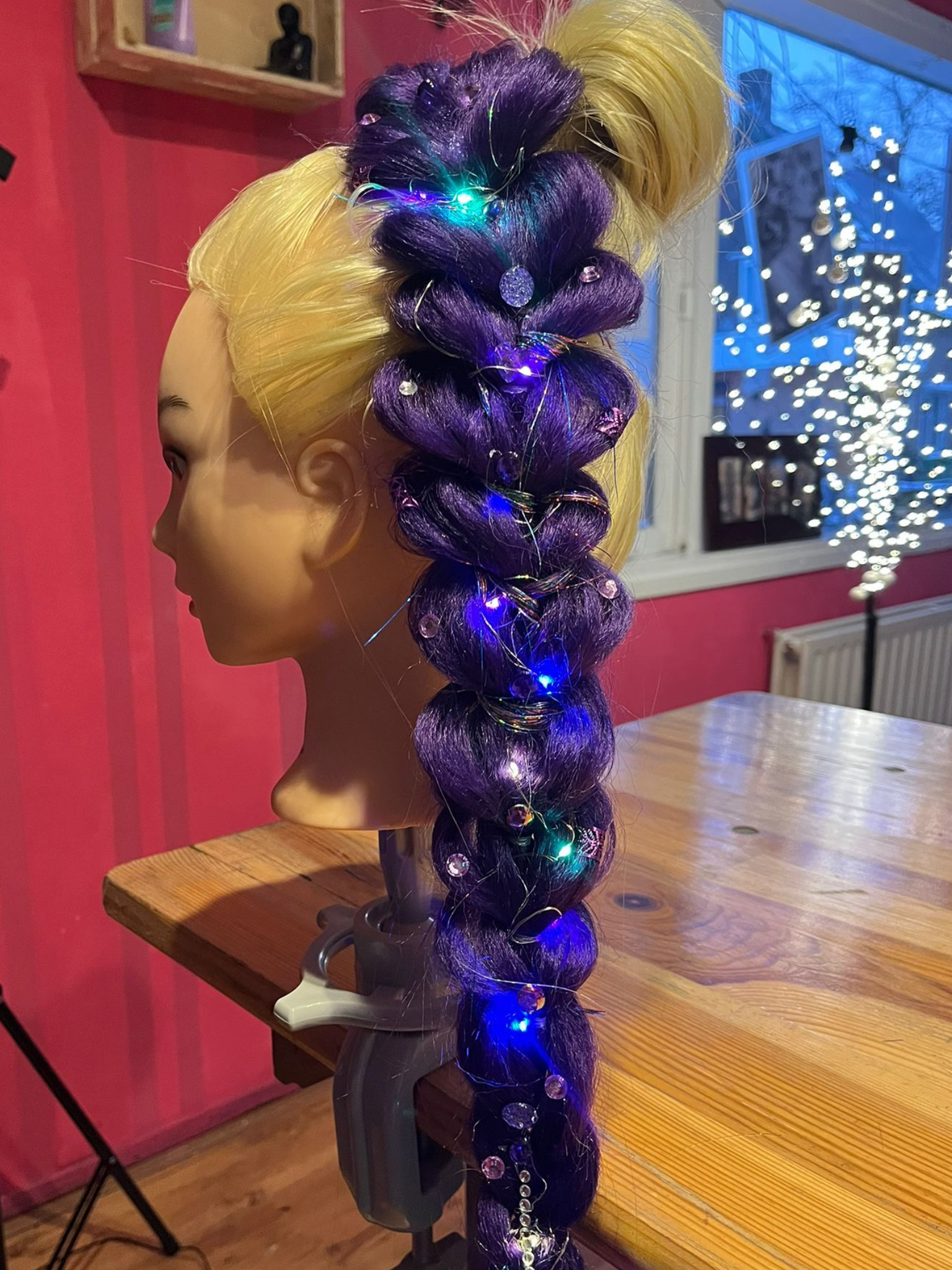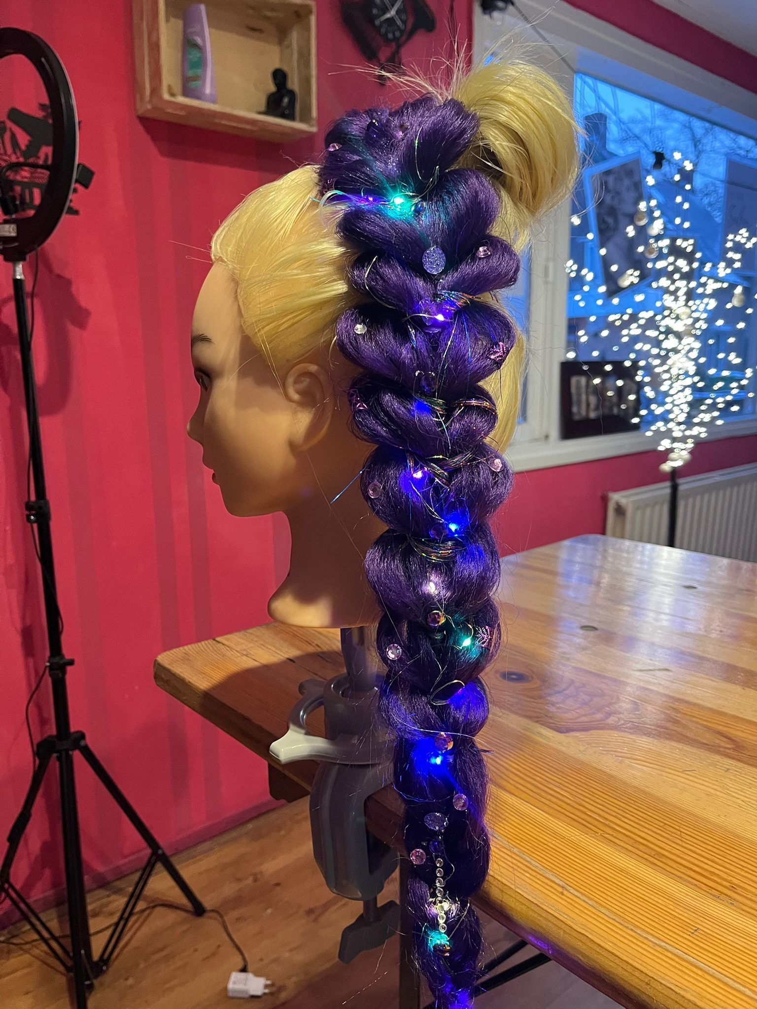 Het invlechten met synthetisch haar en 2 lampjes in elke streng