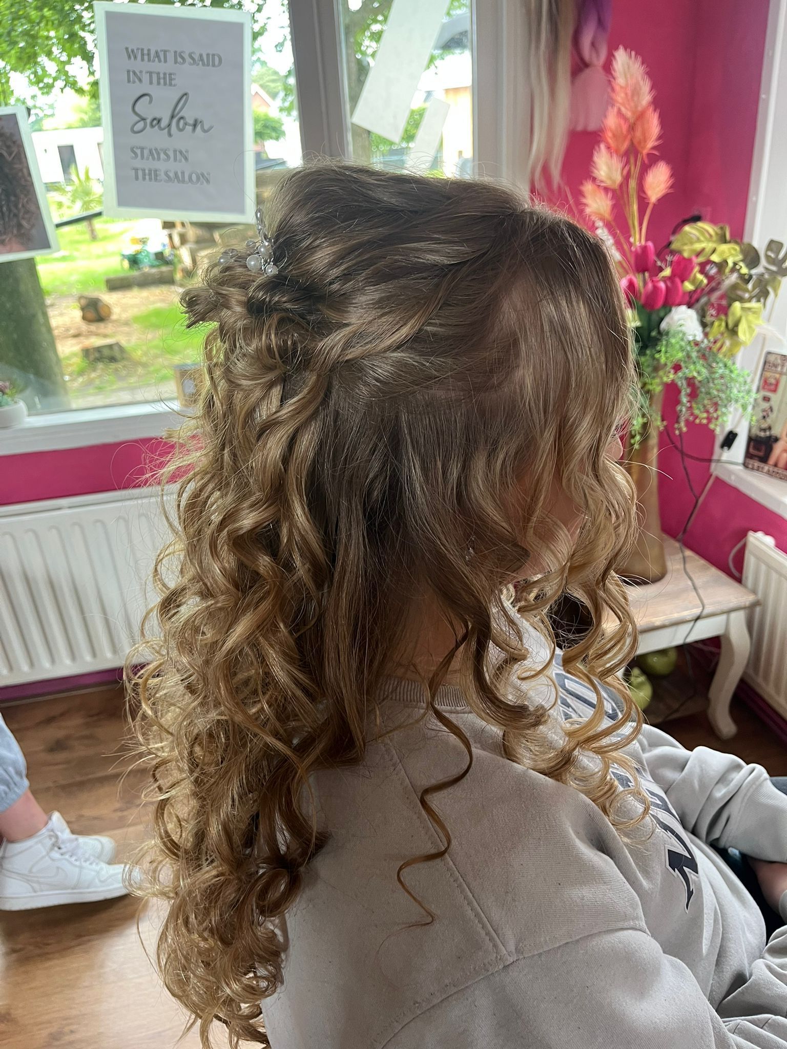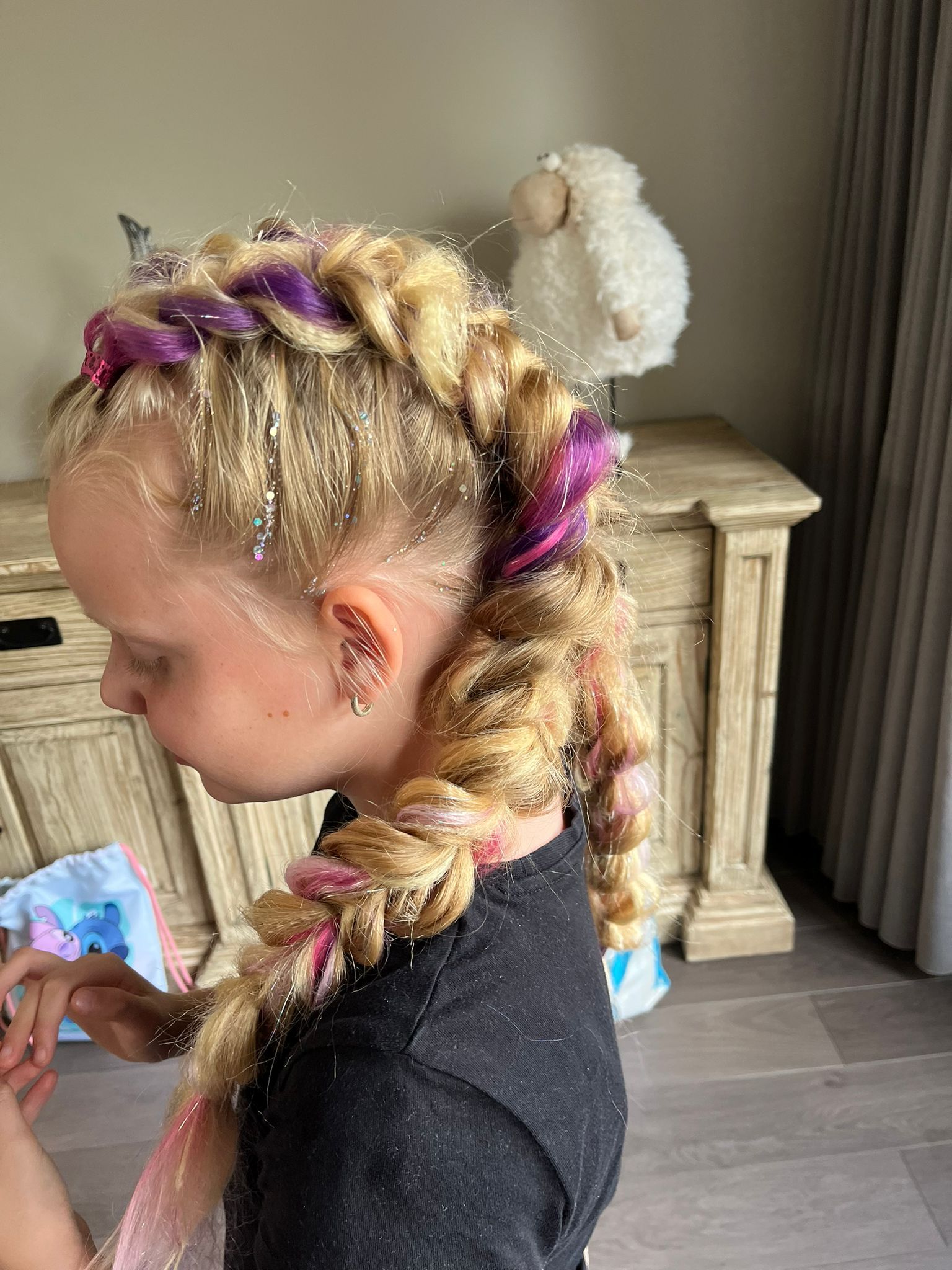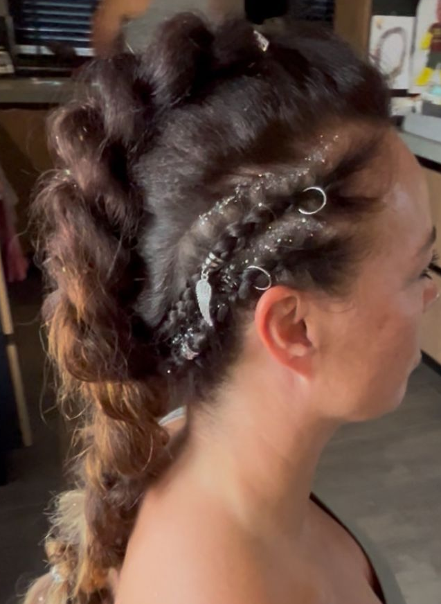 Vlecht met bloemen, glitters en strikjes