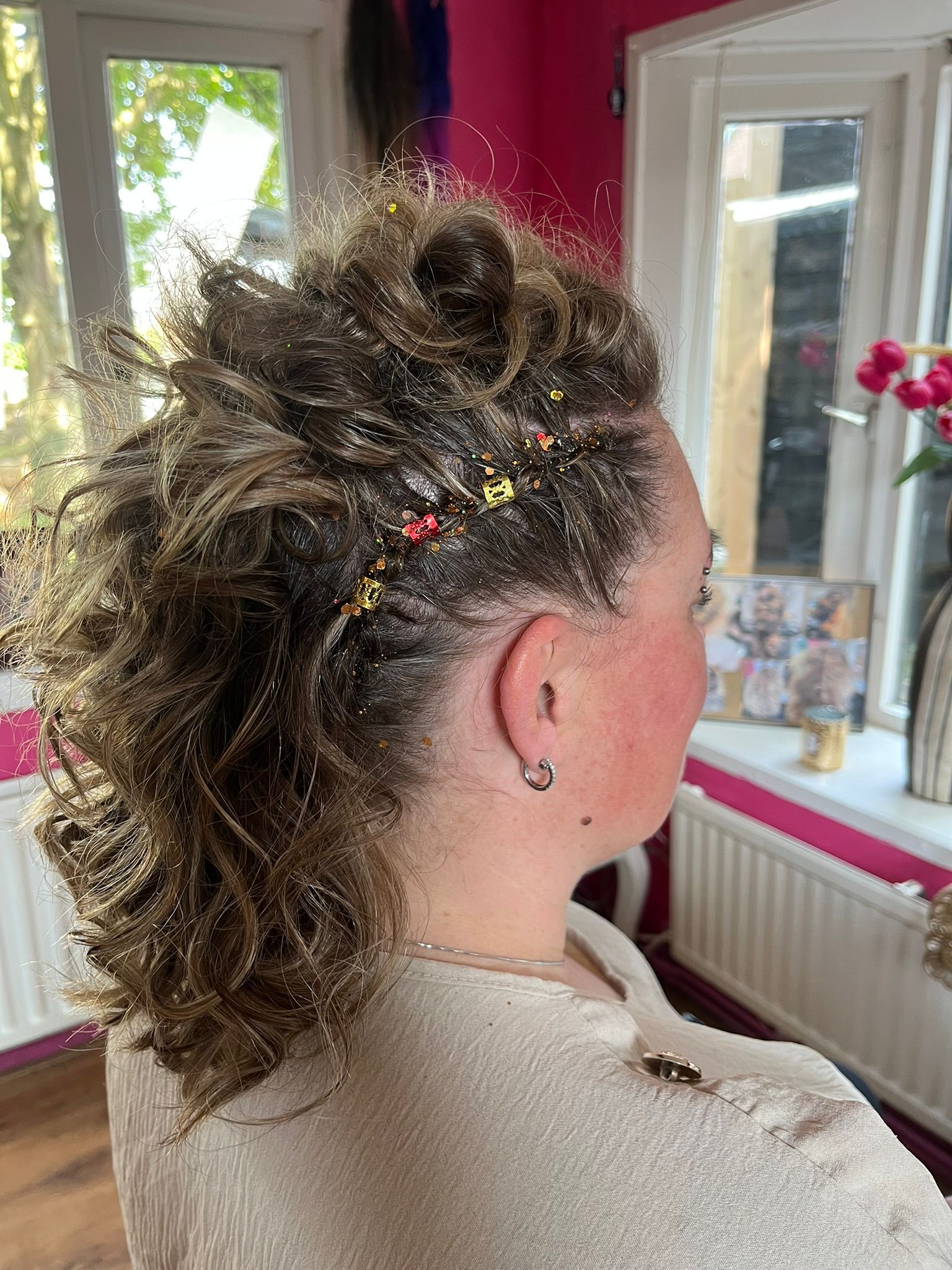 zijn creativiteit en hair-up do's.